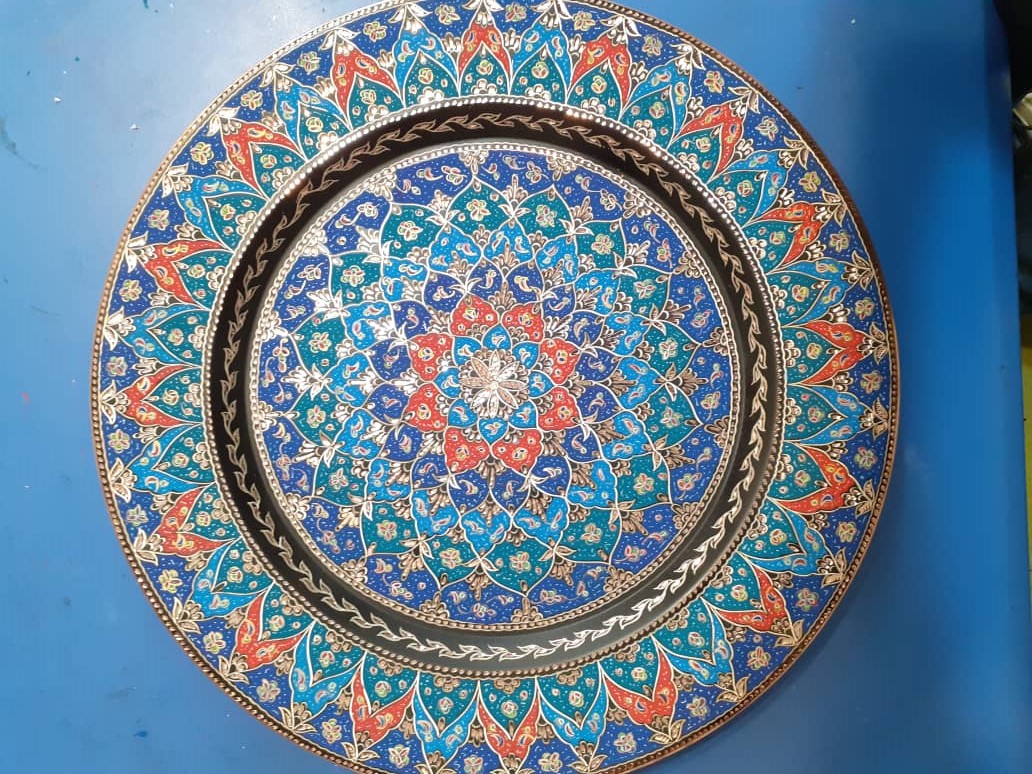 İran El Sanatı İşlemeli Bakır Tepsi-Tabak "Sırr-ı Aşk"