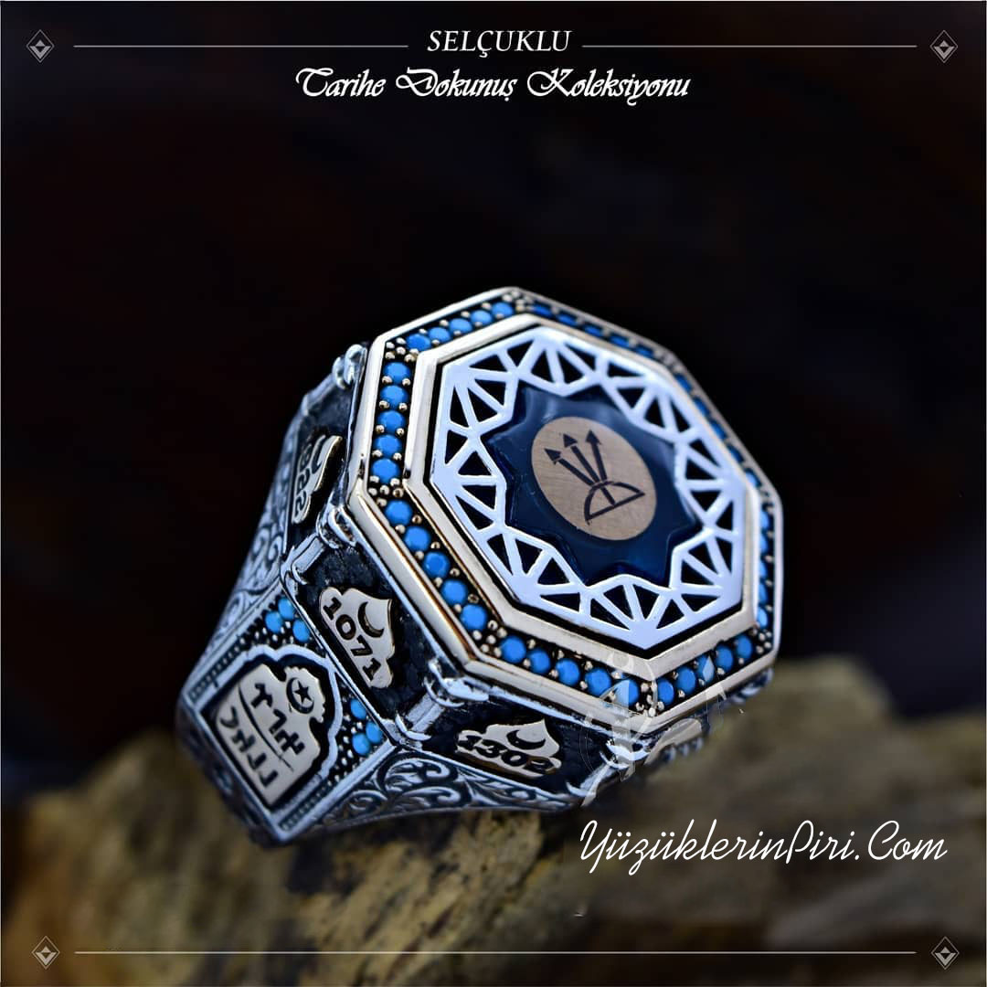 Koleksiyonluk Özel Tasarım Selçuklu Motifli Oğuz Kağan Mühür Yüzük